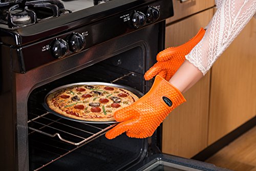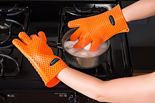 ✅QUALITY ASSURANCE - OUR GUARANTEE: The eco-friendly gloves are made of 100% food grade silicone; Heat resistant from -40 C to 425 F; Complies with RoHS/FDA/LFGB/UL/SGS; Non-toxic and odorless; The mini heart shape design make the grip non-slip and easy to hold any items. (*SAFETY REMINDER*: Silicone gloves should only be used for short periods at a time. The gloves should not come into contact with extreme heating elements, gas flames or similar sources of high temperature.)