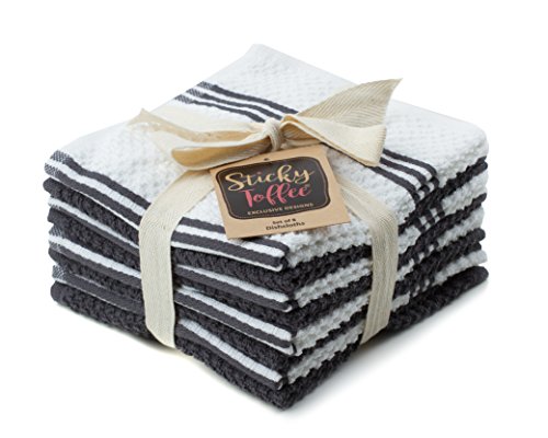 Sticky Toffee Cotton Terry Kitchen Dishcloth, Gray, 8 Pack, 12 in x 12 in