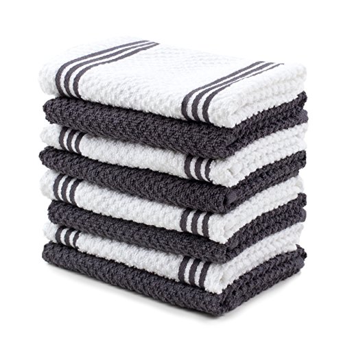- ABSORBENT: Designed with a popcorn terry construction, these dishcloths are highly absorbent, great for drying, cleaning, scrubbing or achieving any other household task.