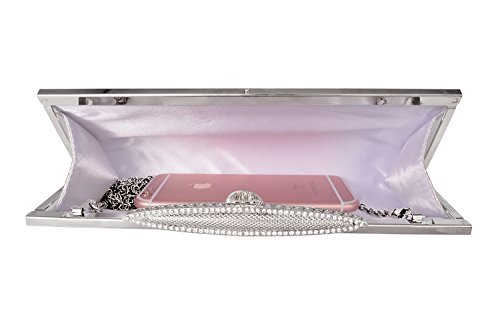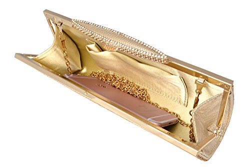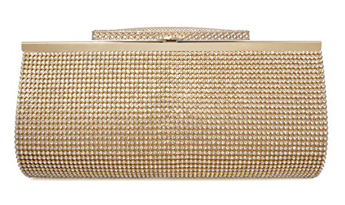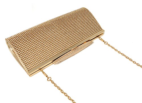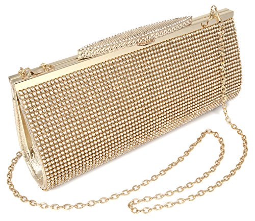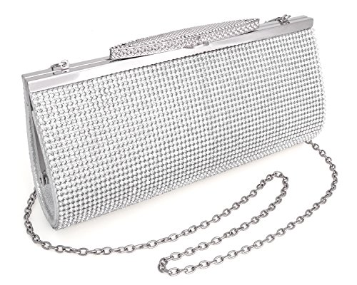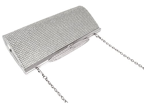 Product Description The glamorous evening party clutch features allover sparkling crystals on the front of this chic shaped clutch. It features clasp closure and detachable chains which offers versatile carrying options as handbag, clutch, a shoulder bag or a cross-body bag.