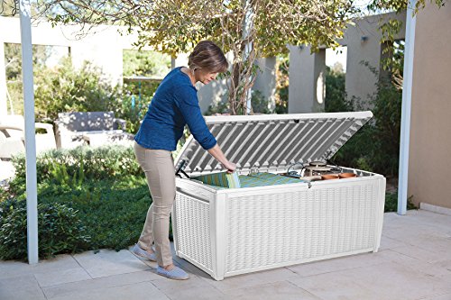 Keter Sumatra 135 gallon Outdoor Storage Rattan Deck Box, White