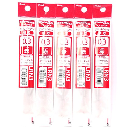 -. Title : Pentel 0.3mm Red Ink Refill (XLRN3-B), for EnerGel Retract Ballpoint Pen(BLN73-B), × 5 Pack/total 5 pcs (Japan Import) [Komainu-Dou Original Package]