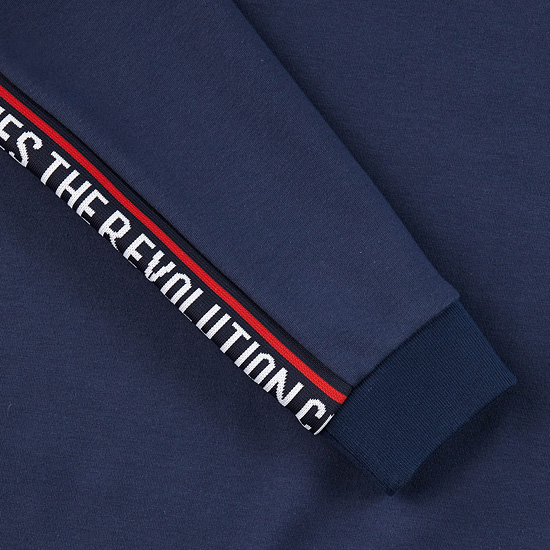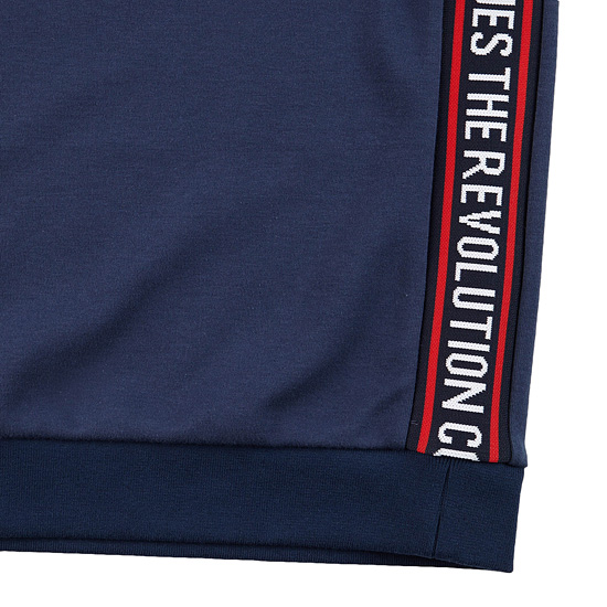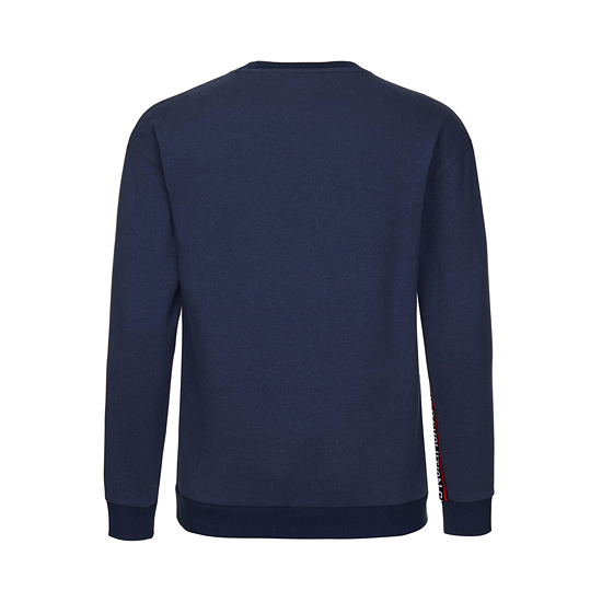 - 브랜드 시즌 감각의 레터링 배색 소재로 포인트를 준 남성 맨투맨 티셔츠.