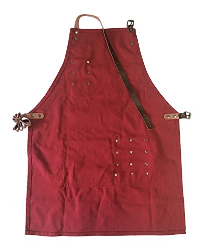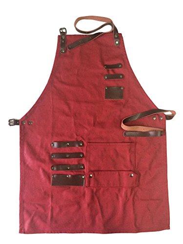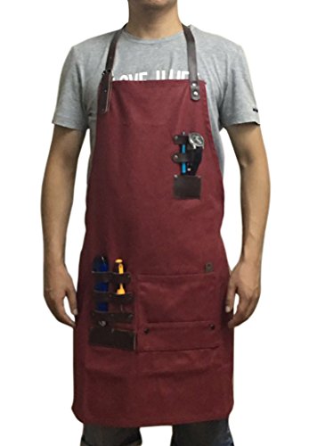 - HIGH QUALITY---Waterproof 600D waxed canvas work apron, adjustable leather straps for maximum comfort and fit, straps nailed with rivets for extra strength and durability