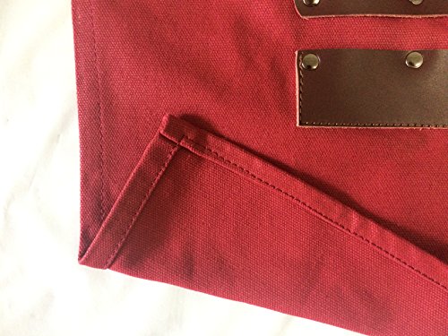 FENFEN Workshop Apron with Pockets Heavy Duty Waxed Canvas Utility Tool Aprons Adjustable Size for Men & Women (Red)