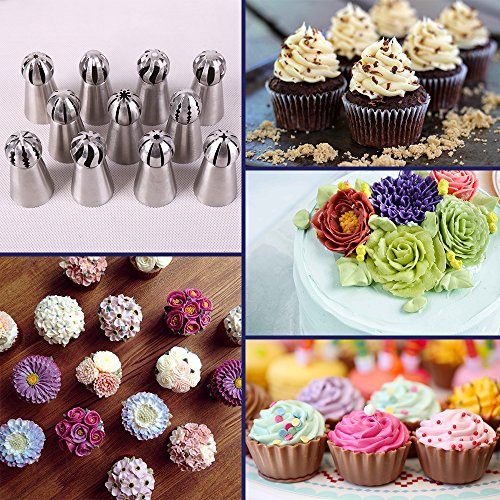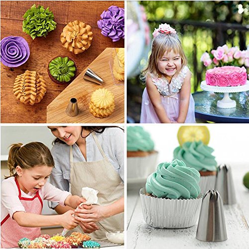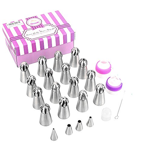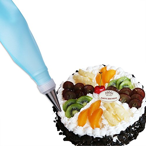 Product Description Package includes 20 X pastry piping tips 1X Resuable silicone pastry bag 1 X Tri-color coupler 2 X single color coupler 1 X cleaning brush 45X Disposable icing bags 1 X manual 1XGift box Easy to use and clean Wash the tips in hot water Insert the nozzle in the bag Put the icing in the bag. Icing should be firm, not too soft Place the nozzle to the cake, squeeze gently Wipe the end of the nozzle Use a leaf nozzle to fill in gaps to complement the overall look Pop in the fridge if it is too soft After use, soak and wash in hot soapy water and dry Includes pamphlet, and PDF link for a downloadable instruction file Risk-Free Icing Now you can decorate your cakes like a Pro! Simply click the, Add To Cart button above, to purchase your new cake icing kit today. Not completely satisfied? We'll make it right, no questions asked. All of our products have our 30-day return policy which means you can experience your new cake decoration set risk-free. Click the Add to Cart button and Order Now, with our current promotional offer! 0