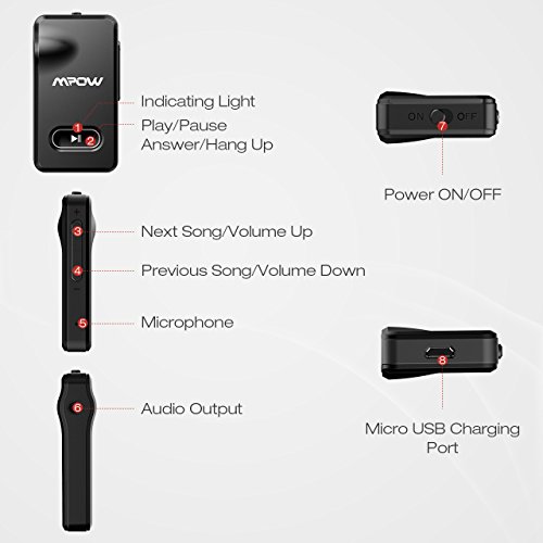 - UPGRADED MPOW BLUETOOTH 4.1 RECEIVER: Designed for saving non-Bluetooth Speakers / car / headphones stereo system to enjoy crystal clear music with HFP/HSP/A2DP/AVRCP/CVC6.0 & hands-free calling with built-in micphone.