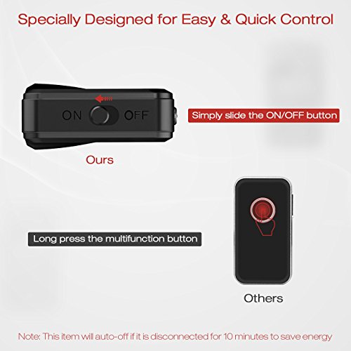 - ONE-SECOND SWITCHING BUTTON BLUETOOTH ADAPTER: Designed with humanized ON/OFF button and widened volume/track control on the side for quick and convenient control for your talking and listening experience.( Note: Mpow will auto-off if it is disconnected for 10 minutes to save energy)