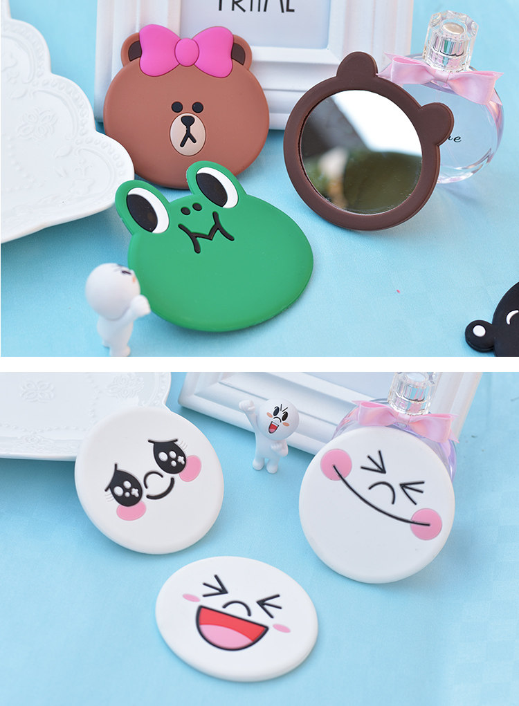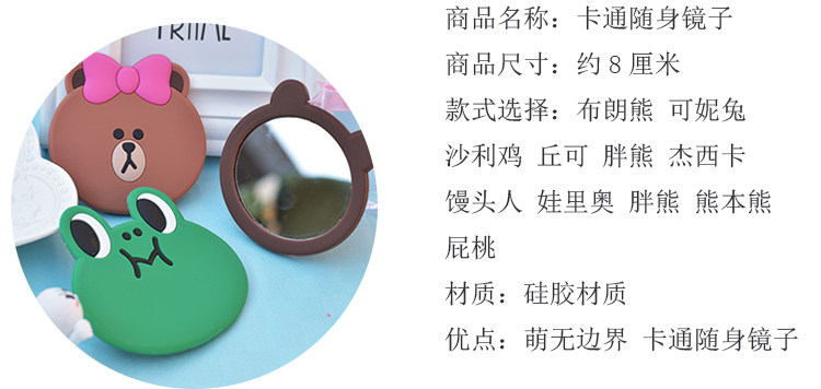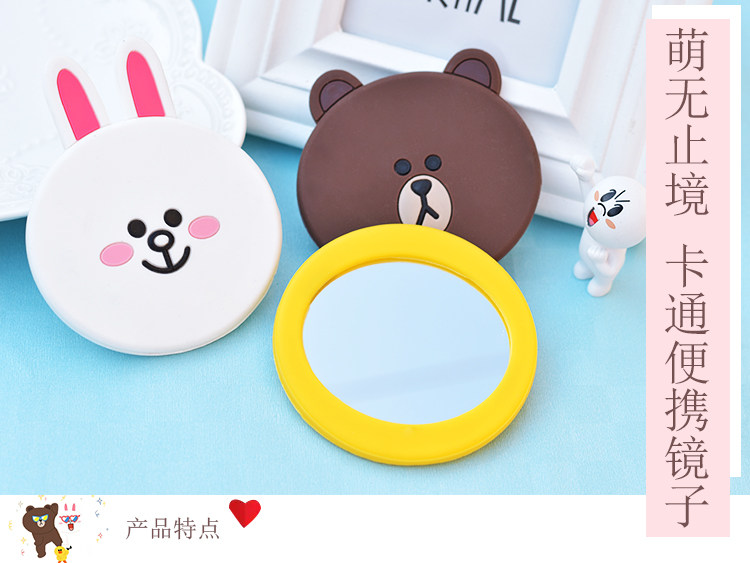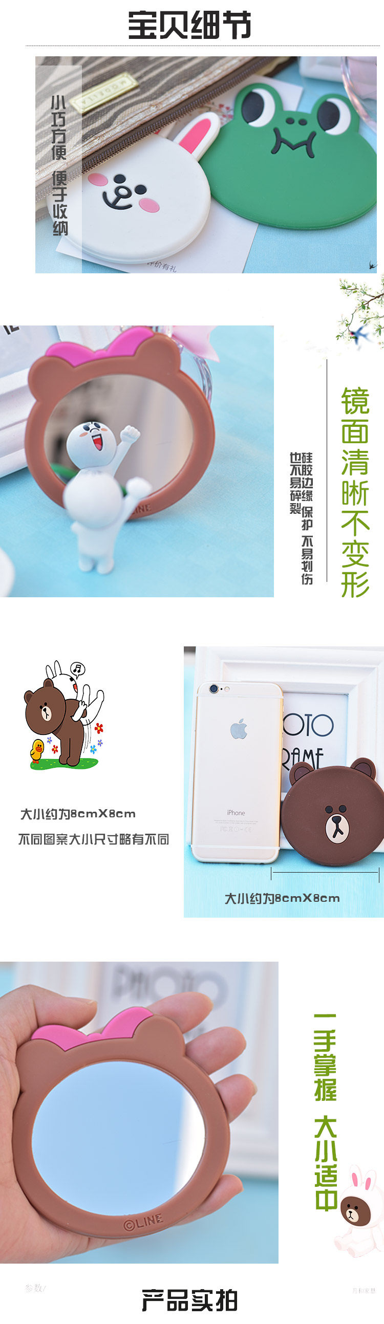 韩国卡通line friends布朗熊可妮兔迷你随身小镜子便携化妆镜