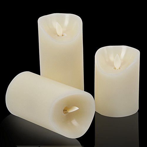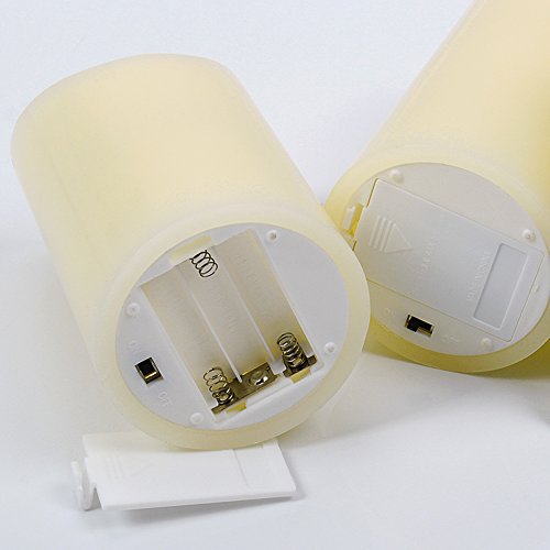 - Candles made with real Wax and may melt in some conditions. Product sizes are: 4", 5", 6" Tall and 3" Wide. These products require 3 AAA batteries for each candle, which have 24+ hours of light-time. Replaced easily via the tab at the bottom
