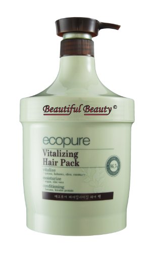-. Feature : ECOPURE VITALIZING HAIR PACK CONTAINS 86.7% OF NATURAL ORIGIN INGREDIENTS / NATURAL INGREDIENTS - (QUINOA, BABASSU, OLIVE & ROSEMARY) VITALIZE, (ARGAN & ALOE VERA) MOISTURIZE AND (BANANA & KERATIN PROTEIN) CONDITON YOUR HAIR / THESE 7 NATURAL INGREDIENTS NOURISH TO YOUR HAIR & SCALP AND MAKE YOUR HAIR HEALTY, SILKY & SMOOTH / SHINING COMPLEX OF ECOPURE MAKE PROTECTIVE LAYERS TO PROTECT YOUR HAIR AND KERATIN PROTEIN BONDS AND REPAIRS DAMAGED CUTICLE LAYER DUE TO EXCESSIVE HEAT, COLOR AND / OR CHEMICAL HAIR TREATMENTS / ITS SWEET FLORAL SCENT WILL GIVE YOU A COMFORTABLE & FRESH FEELING / ECOPURE VITALIZING HAIR PACK CONTAINS NO COLORING, NO ETHANOL, NO MINERAL OIL, NO BENZOPHENONE & NO ARTIFICIAL ANTIOXIDANT / MADE IN S. KOREA / 1000ml (33.81 fl.oz)