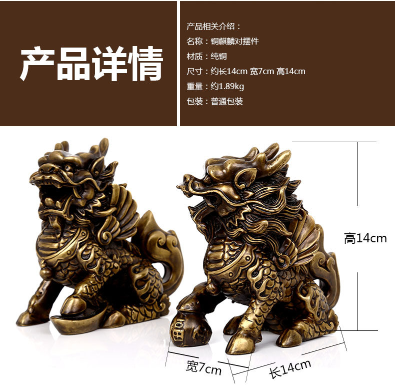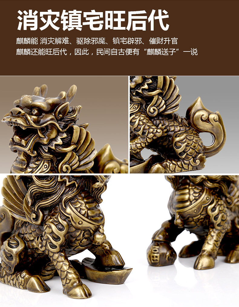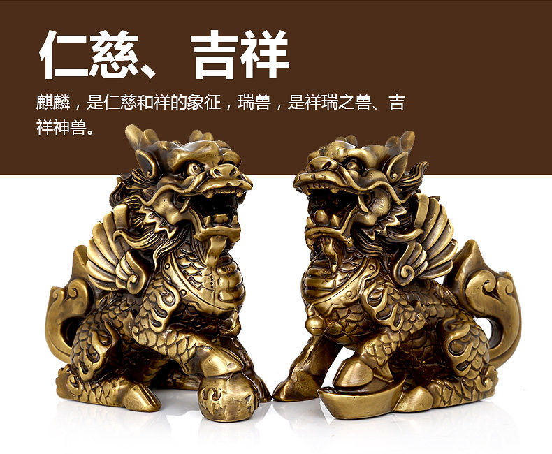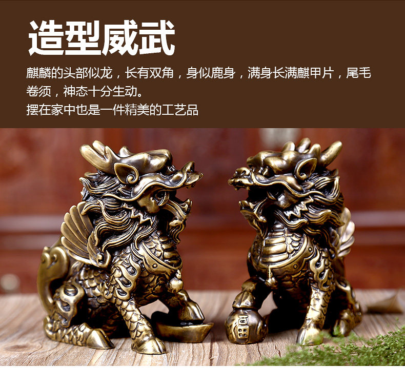 纯铜财富麒麟摆件 威武招财送子麒麟家居装饰工艺品