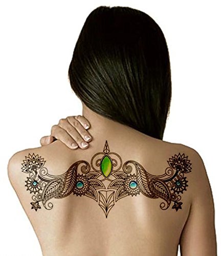 High quality sexy removable waterproof jewelry inspired temporary tattoos body art. Easily water transfer on and remove by baby oil. Can be used on the chest, face, neck, back, shoulder, arm, forearm, ribs, lower back, thigh, leg, ankle, under the ear, wrist and more.