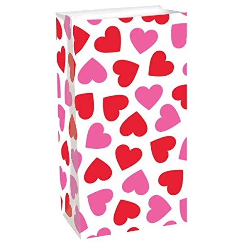 Key To Your Heart Valentine's Day Party Key to Your Heart Treat Bags , Red/Pink/White, Paper , 10" x 5 1/4" x 3", Pack of 12