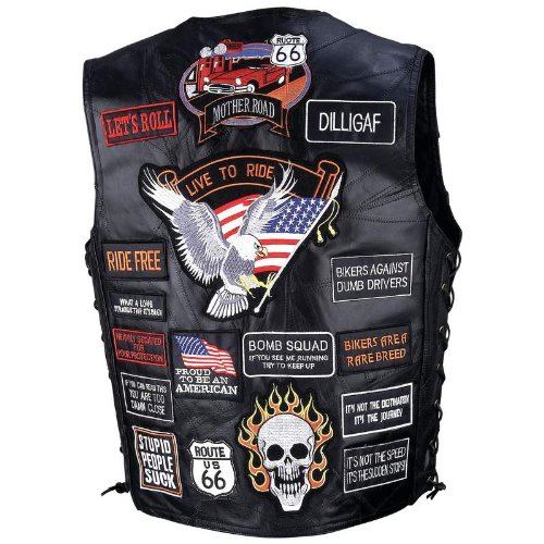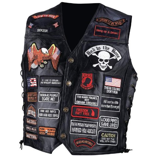 Diamond Plate Rock Design Genuine Buffalo Leather Biker Vest With 42 Patches- 3x