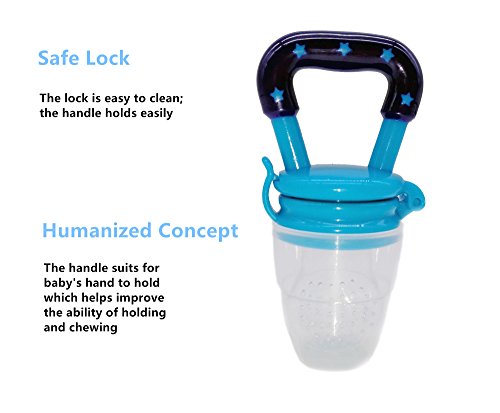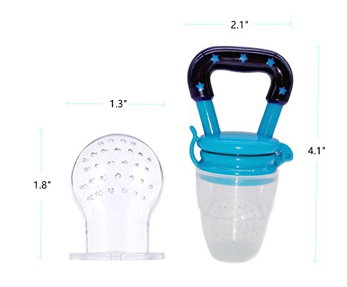 -. Feature : Our baby food feeder by chewing on the soft silicone textured nipple your baby will soothe their gums. / The material used makes our baby food feeder stain-resistant. You only have to wash with warm soap water, or boil to sterilize. / Our baby food feeder is made of the highest level of food grade silicone, no BPA, no latex, no oil, no unleaded and no phthalates. / Make it easy for baby feeding and baby teething as well plus it does not retain odors, and encourages chewing, more natural and comfortable to the baby. / Our baby food feeder - 4.1 * 2.1 inches, suitable for 6+ months baby, the impact device holes are small, which is important for safety, which means no big chunk or any big enough to allow the baby to choke into the baby's mouth. The baby food feeder has two colors - blue, pink.