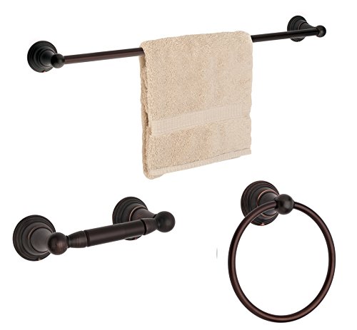 Dynasty Hardware 2200-ORB-3PC Muirfield Series Bathroom Hardware Set, Oil Rubbed Bronze, 3-Piece Set, With 24" Towel Bar