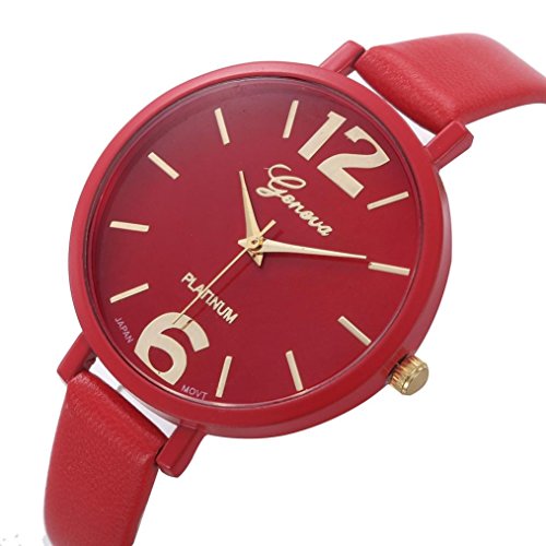 -. Title : Geneva Women Faux Leather, Ninasill Analog Quartz Wrist Watch(Red)