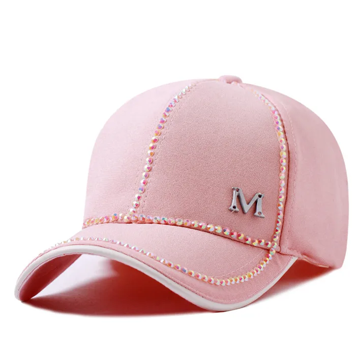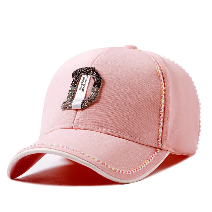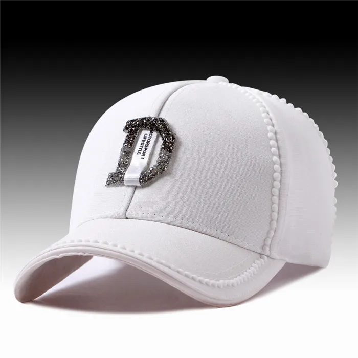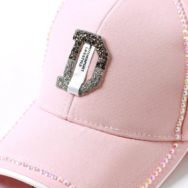 Description::2018 Summer New Women Diamond Letter D Rhinestone Baseball Caps Female