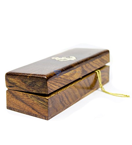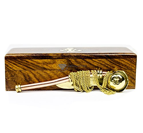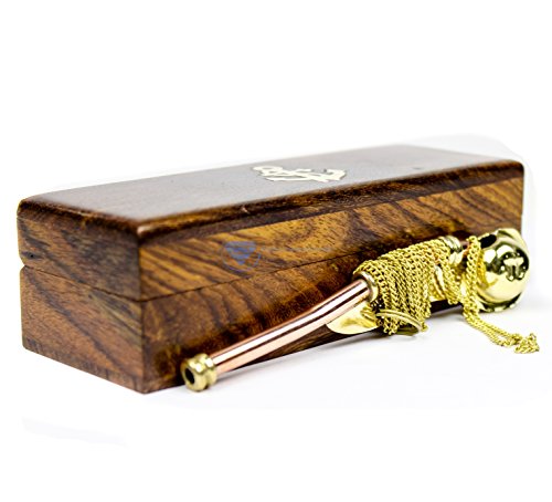 Boatswain's Brass Crafted Bosun's Pipe Whistle With Chain & Handcrafted Rosewood Anchor Inlayed Case | Pirate's Decor Collection | Maritime Decor | Nagina International (Brass Polished W/ Box)