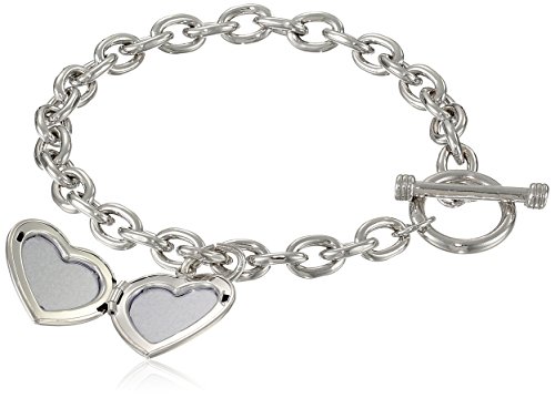 -. Title : Sterling Silver Toggle Bracelet with Heart Locket, 8"