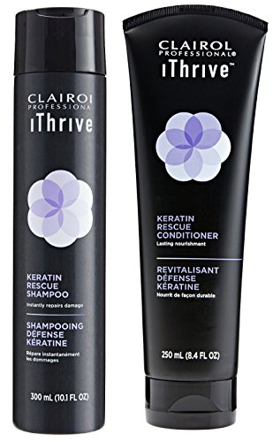 Clairol Professional iThriveTM Keratin Rescue System is specifically formulated with IntenseCURE to revive dry and damaged hair. Keratin Rescue System with IntenseCURE creates a layer of protection around each hair strand. Regular usage of system provides lasting moisturization, strength and protection from damage. Color safe.Feature