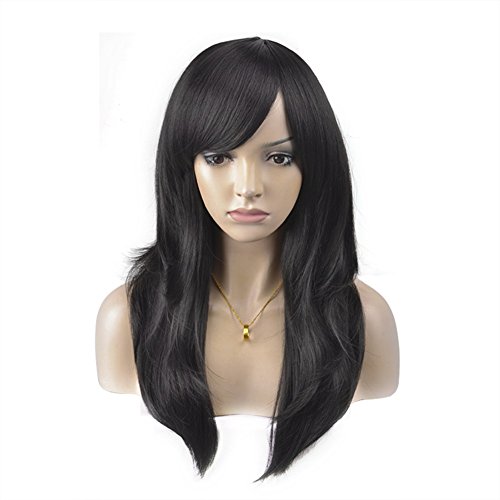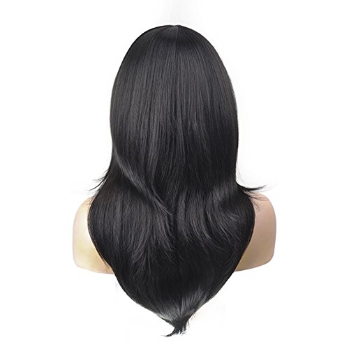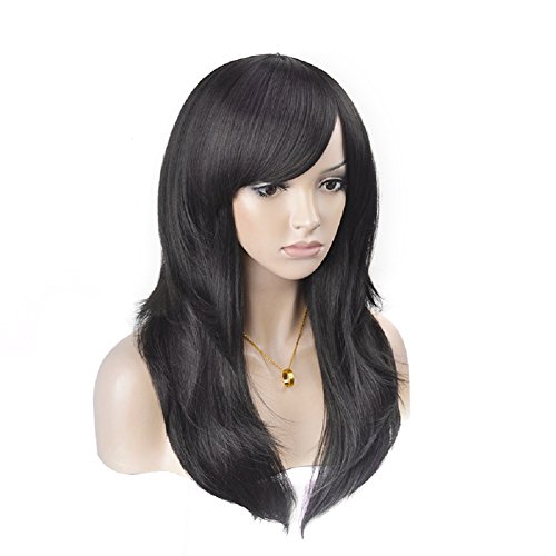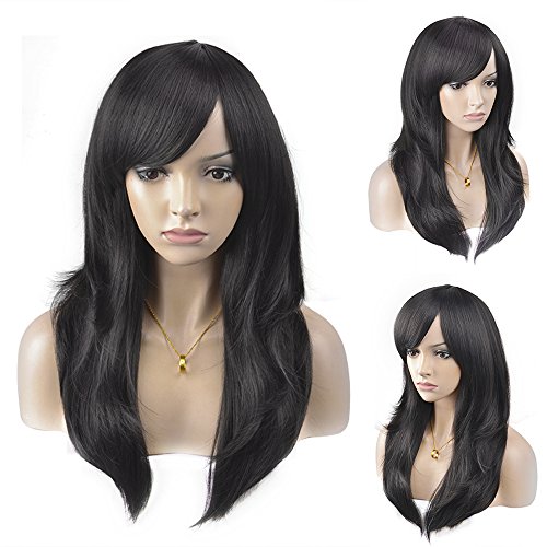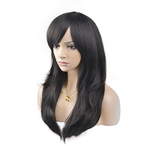 DAOTS Long Layered Wigs Heat Resistant Synthetic Fiber Natural Curly Wavy Hair Wigs for Women (Black)