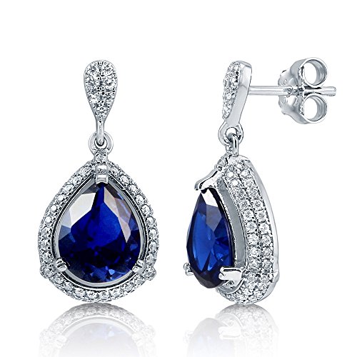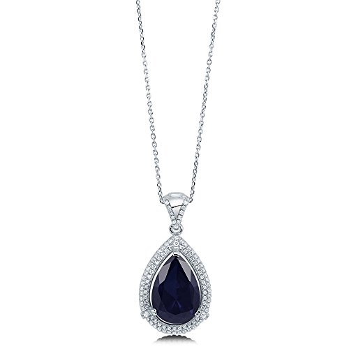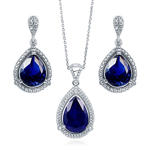 -. Title : BERRICLE 925 Silver Pear Simulated Sapphire Cubic Zirconia CZ Halo Bridesmaids Necklace Earrings Set