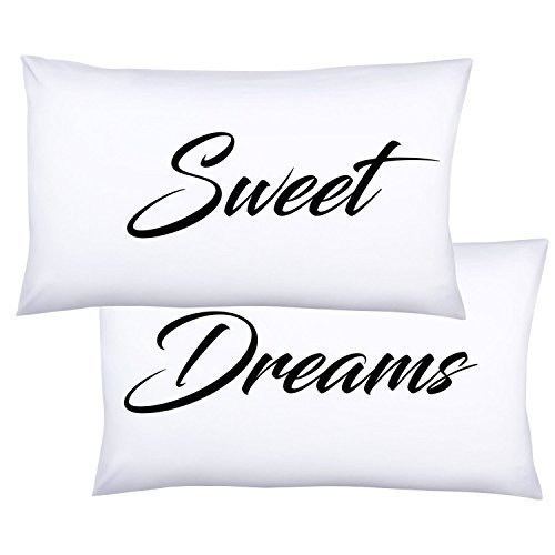 HappyHugs Peach Microfiber Queen Pillowcase Sweet Dreams, 20 by 30 Inches, Set of 2
