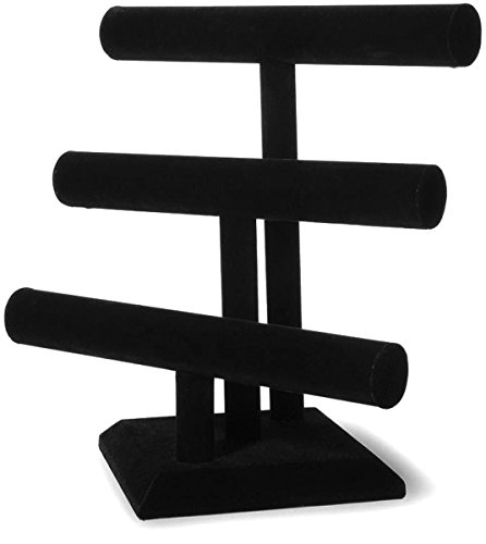 -. Title : Darice 12-Inch-by-12-Inch Triple Bar Jewelry Stand, Black Velvet