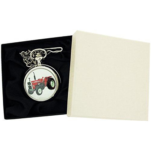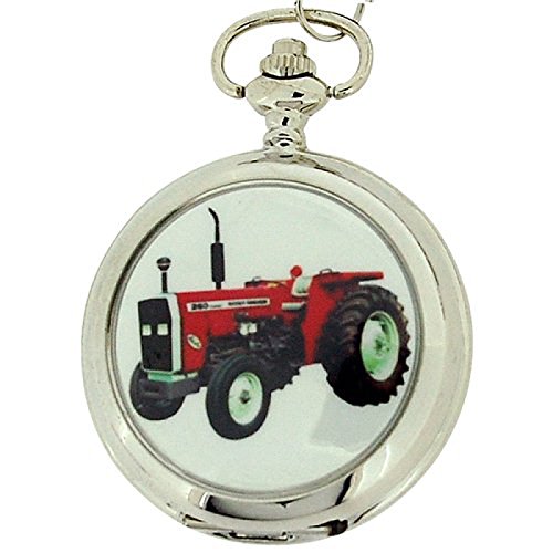 -. Title : Boxx Gents White Dial Tractor Pocket Watch on 12 Inch Chain Boxx88