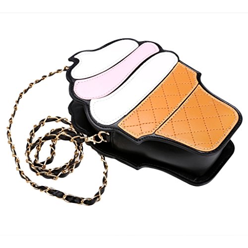 -. Brand : Best Deal -. Department : Womens -. Feature : Material: Synthetic Leather / 2 Colors for your choice: Cupcake/ Red, Ice Cream/ Black / Gender: Women / Item: Shoulder Bag / Style: Cute Cartoon -. ProductGroup : Shoes -. ProductTypeName : HANDBAG -. Title : Cute Cartoon Women Ice Cream/ Cupcake Shape Mini Shoulder Bag Metal Chain