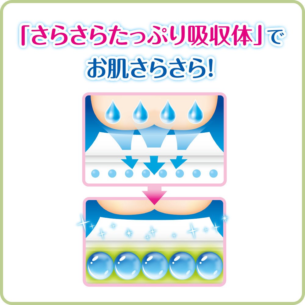 (* 1) Uni Charm's "super absorbing body" with its own high absorbent polymer, so it's safe to spend a long time playing.