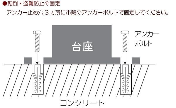 ※台座と地面を固定する為のアンカーボルトは付属しておりません。市販のアンカーボルト(10Φ)をご用意ください。