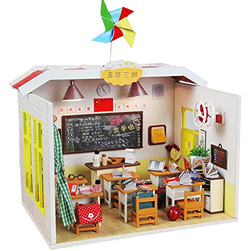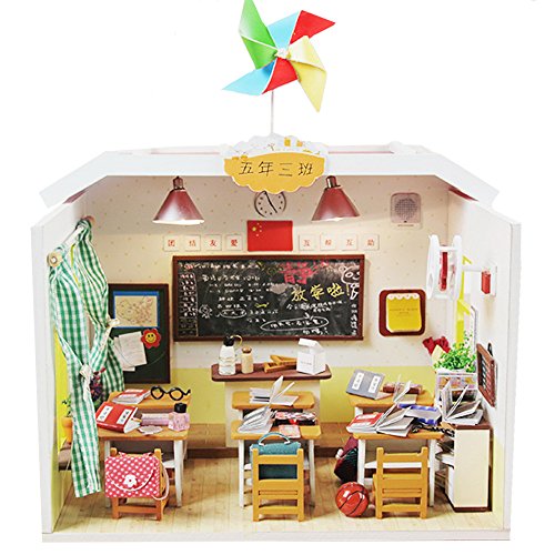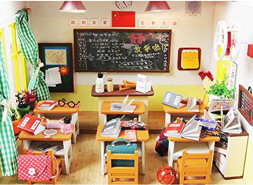 -. Title : WYD DIY Classroom Miniature Furniture Kits House,Handmade Wooden Doll House