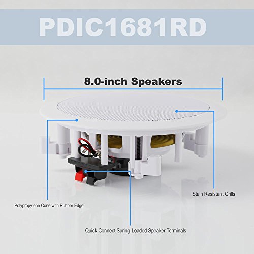 -. Binding : Electronics -. Brand : Pyle -. Color : White -. EAN : 0068888770422 -. Feature : SEAMLESS INTEGRATION - Perfect for existing home theater systems this Pyle 2-way in-ceiling or in-wall speaker system delivers incredible stereo sound to any room in your home from speakers you can barely see without using any floor or shelf space / EASY TO INSTALL - Includes a cut-out size template and quick connect sP.R.Ing-loaded speaker terminals for simple, easy, no hassle installation, in any room, delivering a full rich sound without cluttering floor space / SPEAKER GRILL -Built in round stain resistant speaker grills. Match existing flush mounted designs in your home or workplace for a clean look & achieve wide-range sound performance without compromise / FLUSH MOUNT DESIGN - Compact flush mount design for simple easy installation in-wall / in-ceiling , or pre-cut speaker openings, for in home use, office, professional, or custom audio applications on any flat surface / HIGH QUALITY - Pair of 8.0'' reinforced polypropylene cones with suspension cloth & 1/2'' High Compliance Polymer Tweeter. Enjoy a more consistent & enhanced sound field with full range stereo surround sound reproduction -. Label : Sound Around -. Manufacturer : Sound Around -. Model : PDIC1681RD -. MPN : PDIC1681RD -. PackageQuantity : 1 -. PartNumber : PDIC1681RD -. ProductGroup : Speakers -. ProductTypeName : SPEAKERS -. Publisher : Sound Around -. Studio : Sound Around -. Title : Pyle Pair Flush 8” Mount In-wall In-ceiling 2-Way Home Speaker System SP.R.Ing Loaded Quick Connections Dual Polypropylene Cone Polymer Tweeter Stereo Sound 250 Watts (PDIC1681RD) -. UPC : 068888770422 -. Warranty : SATISFACTION GUARANTEED: Your satisfaction is our number 1 P.R.Iority. If this item fails to meet your expectations we will accept it back a full refund within the first 30 days. We also stand behind this product with a limited 1-Year manufacturer warranty. Contact us if the item should show any defect within the first year we will help exchange it for a new one.