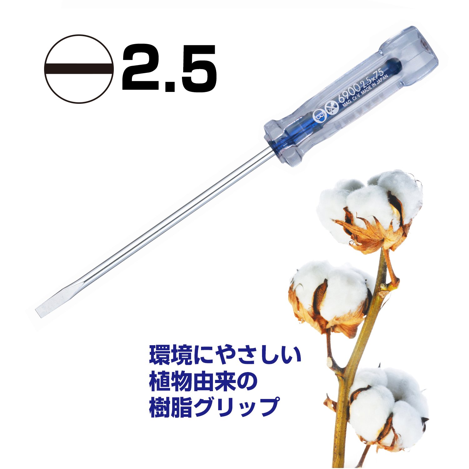 ● Cutting edge: [[(-)] 2.5 ● Shaft length (mm): 75 ● Full length (mm): 125 ● Full body quenching ● Cutting edge: with magnet
