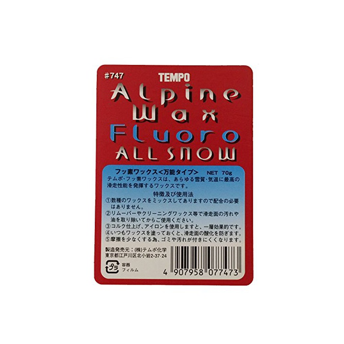 원본상품명: TEMPO スキワックス フルオロワックス(白) フッ素万能 70g -20℃~20℃ #0747