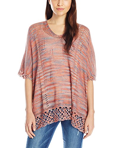 Democracy Women's Knit Sweater with V-neck Multi Color Yarn, Coral, X-Large
