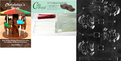 Cybrtrayd Santa with List Lolly Chocolate Mold with Chocolatier's Bundle of 25 Lollipop Sticks, 25 Cello Bags, 25 Red Twist Ties and Chocolatier's Guide