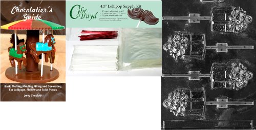 Cybrtrayd Christmas Present Lolly Chocolate Mold with Chocolatier's Bundle of 25 Lollipop Sticks, 25 Cello Bags, 25 Red Twist Ties and Chocolatier's Guide