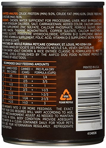 -. Binding : Misc. -. Brand : Purina Pro Plan -. EAN : 0038100026743 -. Feature : High-Quality ingredients including real meat, poultry, or fish / 100% complete & balanced nutrition for each life stage / Optimal levels of protein and fat help dogs maintain an ideal body condition / Carefully adjusted formulas mean your dog is getting exactly the nutrition he needs -. Label : Pro-Motion Distributing - Direct -. Manufacturer : Pro-Motion Distributing - Direct -. Model : 38100026743 -. MPN : NPU02776 -. NumberOfItems : 1 -. PackageQuantity : 1 -. PartNumber : NPU02776 -. ProductGroup : Pet Products -. ProductTypeName : HARDWARE -. Publisher : Pro-Motion Distributing - Direct -. Size : 13 oz. -. Studio : Pro-Motion Distributing - Direct -. Title : Purina Pro Plan Canned Adult Chicken and Rice Food, 13 oz (Pack of 12) -. UPC : 038100026743