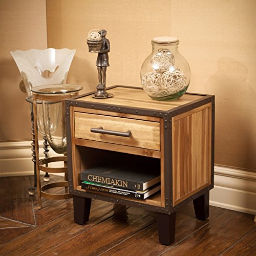 Product Description Bring the beauty of acacia wood to your home with this night stand from Christopher Knight Home. The natural look of acacia wood contrasts with the iron frame, giving this modern night stand an element of industrial design. This wood night stand has a small shelf that is ideal for storing books or magazines and a drawer for holding small items. Give your master bedroom a steampunk touch with this sturdy night stand. Alternatively, use the piece in your living room, media room or office as a functional side table. Store toiletries, pens and other small items in the unit's upper drawer and place books and magazines in the nightstand's open lower compartment. 0