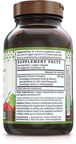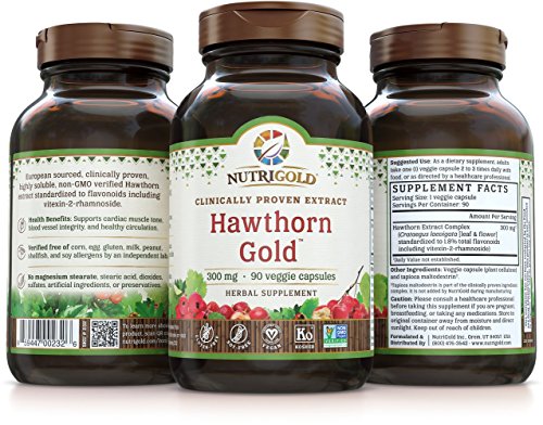 Hawthorn Gold™ by NutriGold® is a high-quality extract of Hawthorn berries standardized to contain powerful antioxidant flavonoids, including 2% Vitexin that, along with other components in Hawthorn, may help support healthy blood flow and blood pressure. When taken as a dietary supplement in conjunction with a low sodium diet and sensible exercise program, Hawthorn Gold™ can help support optimal blood pressure and heart health. Consider taking Hawthorn Gold with CoQ10 plus Omega-3 Gold™ for overall healthy cardiovascular function.*
