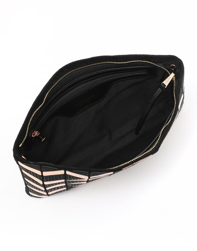 질스튜어트만의 로젤라 패턴을 미러 프리즘으로 연출하여 유니크한 외관의 클러치백 겸용 미니 크로스백입니다.