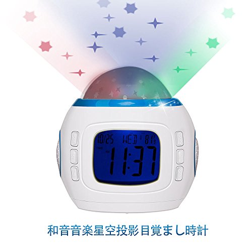 -. Title : 和音音楽星空投影目覚まし時計 七彩目覚まし時計 ブルースクリーン七彩投影ランプ星空万年暦時計 温度表示 電子時計 七彩投影時計 夜光静音時計 デジタルLEDバックライト目覚まし時計 バッテリ給電