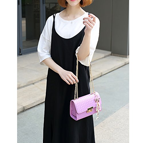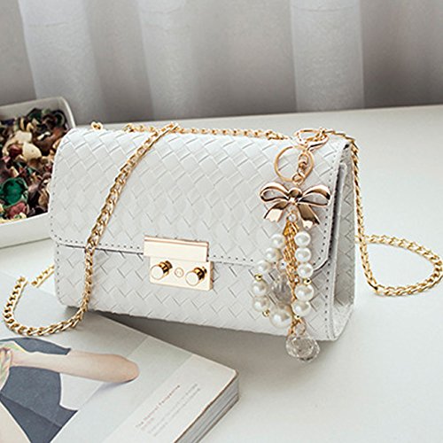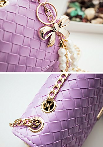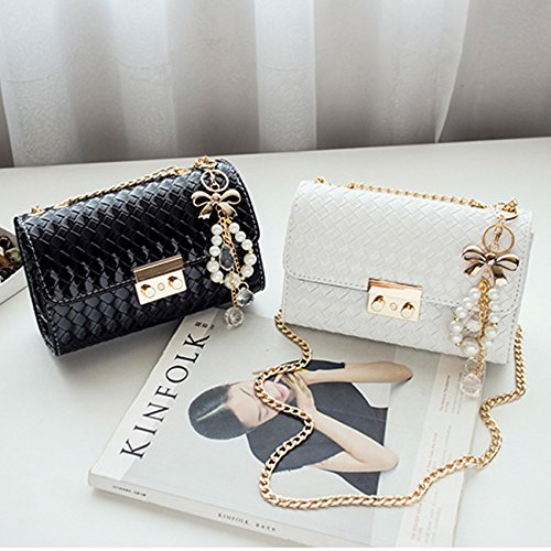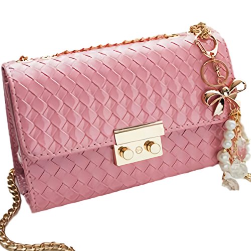 -. Feature : 光沢のあるエナメル調 編みめ調の 型押し 女性らしいデザインのきれいめポシェット。 お洒落なゴールドチェーンは、伸ばして斜め掛け、半分の長さにして肩掛け、バッグにインしてクラッチ風。長さを変えることでバッグの印象や使い勝手が変わります。シュチュエーションで自由に変えられるお利口ポーチです♡ / 長財布、スマホ、ハンカチ、コスメポーチ、キーケース、必要なものはしっかり入るのに、程よく小さいので上品にきれいにまとまります。中央にファスナー付き仕切りがあるので、中のモノが綺麗に整理できて、必要なものがすぐに取り出せます。 / ゴールドのリボン モチーフや、パールなどが付いた華やかで女の子らしい かわいいキーホルダー チャーム付。シーンやファッションに合わせて付け外しができます。 / お手入れが簡単なPU素材なので、特別な日だけでなく、気軽にちょつとしたよそいきやデイリーにもどんどん使って頂けます。 / PUエナメル調バッグ【 サイズ (約)】横20×縦12×幅8cm チャーム:合金、フェイクパールなど