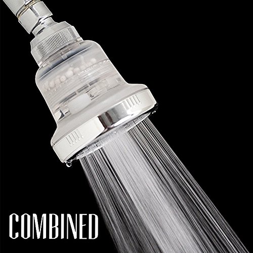 TAKES CARE OF YOUR BODY--Shower Head Pure Action filtration system eliminates chlorine lead calcium magnesium and iron. Showerhead filter purifies water by removing chlorine removes harmful toxins and chemicals from your daily routine. Charges water with antioxidant negative ions.