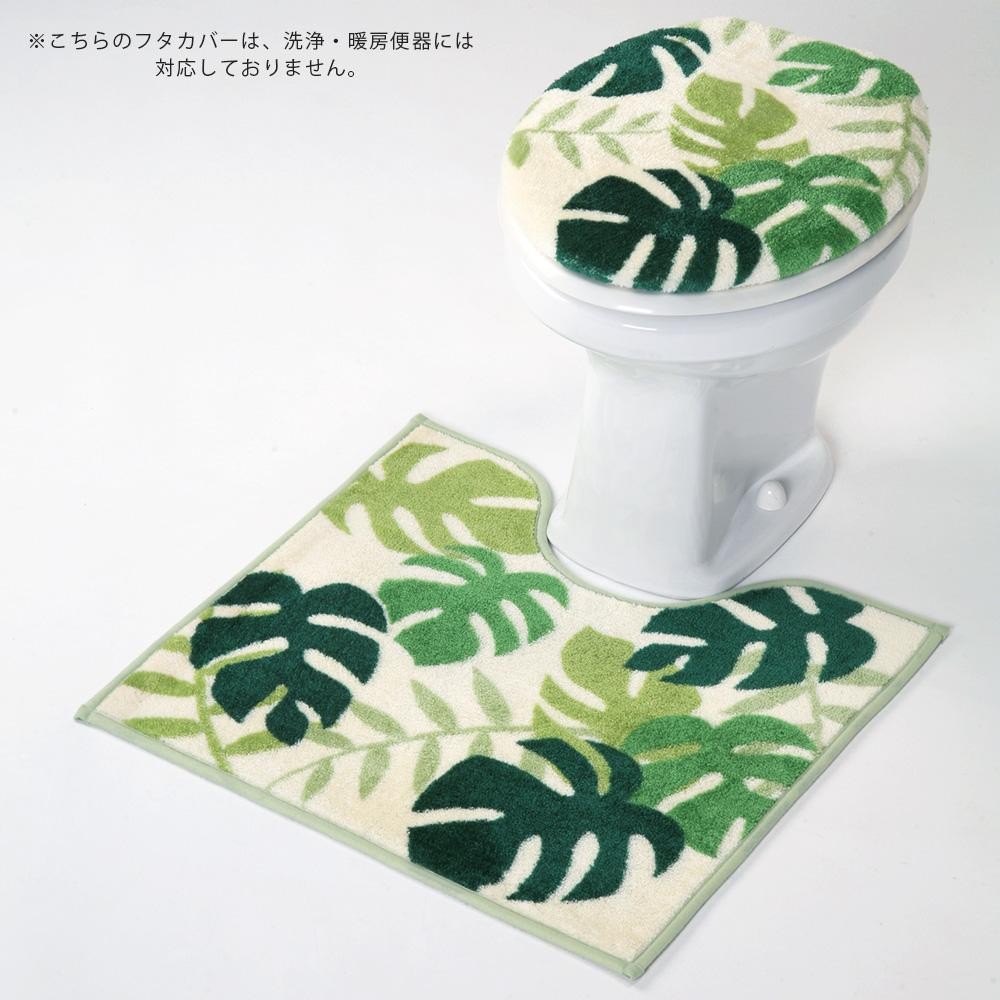 トイレファブリックシリーズ「モンステラ」のフタカバー&足元マット2点セットです。
