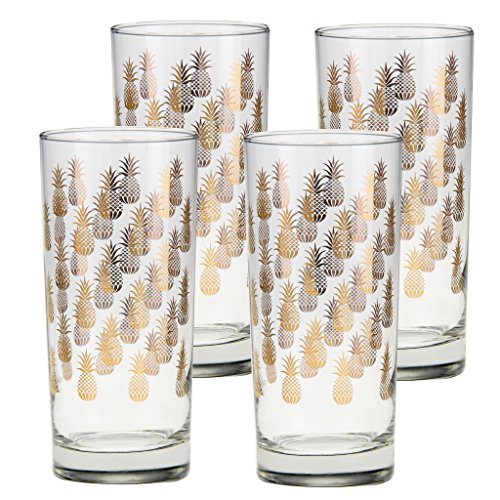 (Culver)/Kitchen Dining/Bar Tools Glasses/DIRECT FROM USA/Culver Gold 22k 15-Ounce Cooler Glass Set of 4 (Pineapples)